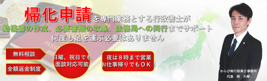 蕨市で帰化申請をご検討の際は、わらび南行政書士事務所までお問い合わせください。さいたま市、蕨市、川口市などを中心に、帰化申請・在留資格・ビザ申請に関する支援を承っています。