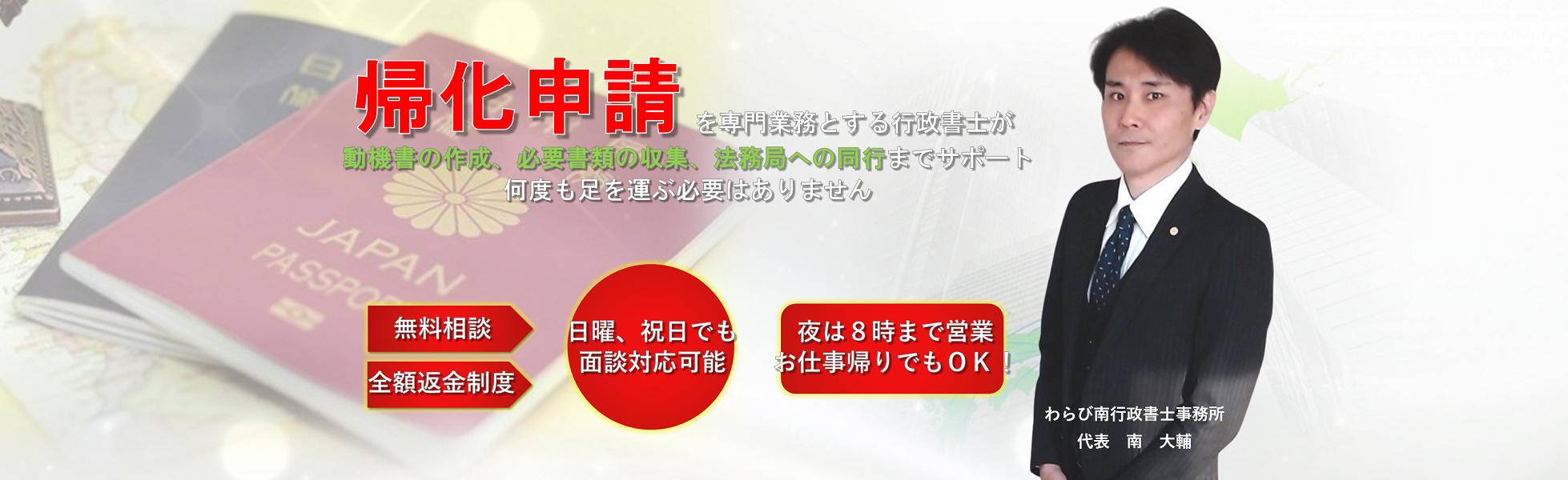 | 事務所名 | わらび南行政書士事務所【さいたま帰化サポートオフィス】 |